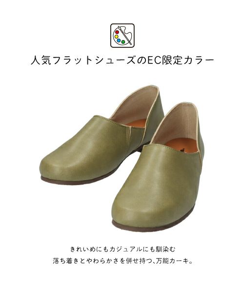 足をやさしく包み込む甲深デザインと、ほどよいフィット感を叶える内側の隠しゴムで、毎日履きたくなる快適な一足♪