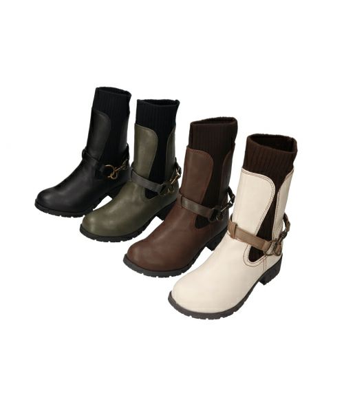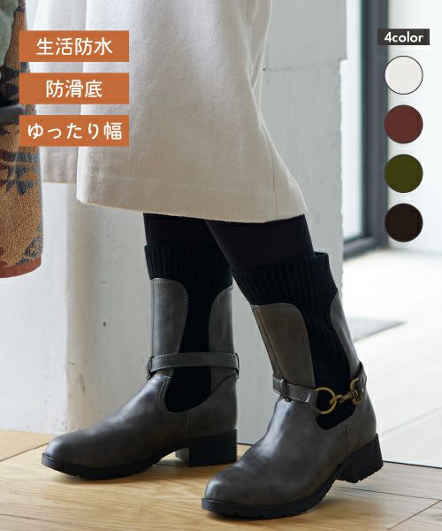 カッコよくも可愛くも履けるショートブーツ 長時間歩いても疲れない 防水ニットジョッキーブーツ KLZ252720