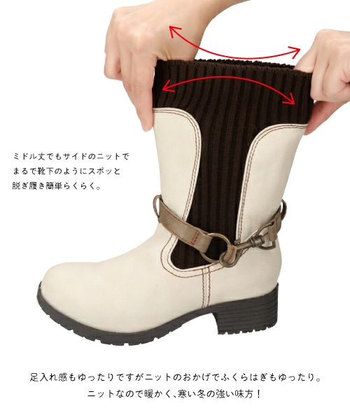 ミドル丈ですが、サイドがニットなのでそのままスポっと脱ぎ履きもできます