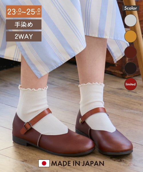 かかと部分に位置を変えると飾りベルトにすることもできる2WAYデザイン