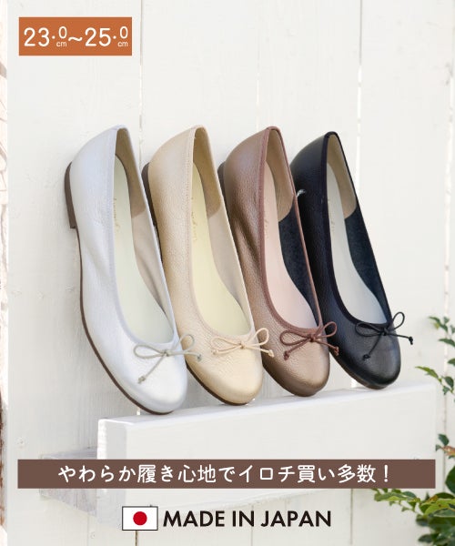 ふかふかのスポンジ仕様のインソールでフラットだけど歩きやすい日本製の素敵なバレエシューズです。