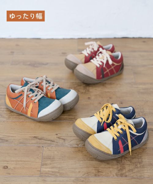 ソールにゴム素材を使用し、アッパーに布や革等の素材を使用した運動靴の総称で、ゴム素材の為足音を立てずにそっと忍び寄る英語の「sneak」が語源となっています。 タイプ・機能・デザインなどで分類され、様々な種類のあるスニーカーは普段使いしやすい点から多くの日本人に親しまれているのではないでしょうか。マーレマーレのスニーカーではソールの屈曲性、通気性の良さから長時間履いても疲れにくいという特徴があります。また、疲れにくいという特徴から幅広い年齢層の方から愛用されています。