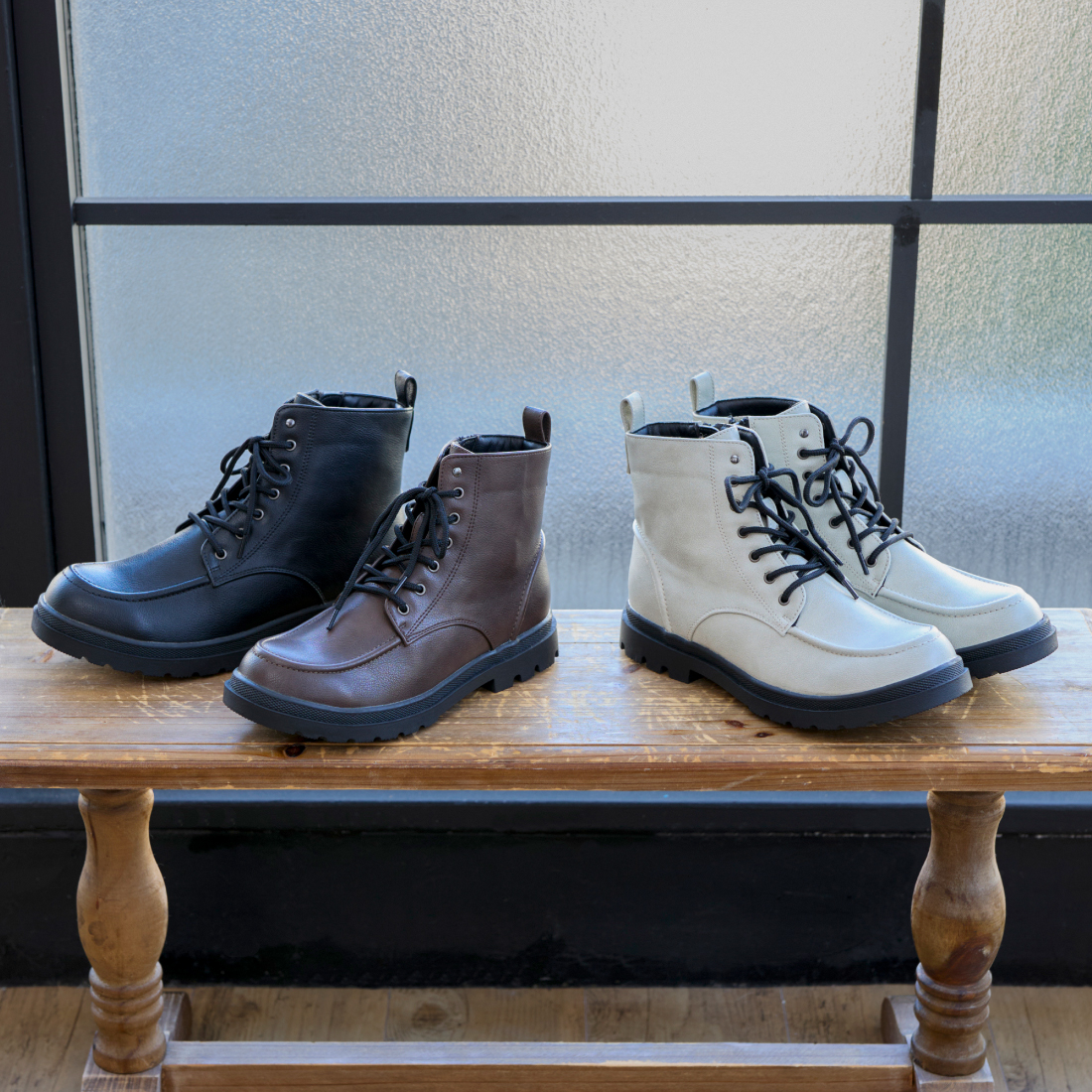| 防水モカ付きレースアップブーツ | ストレッチタンクソールブーツ |