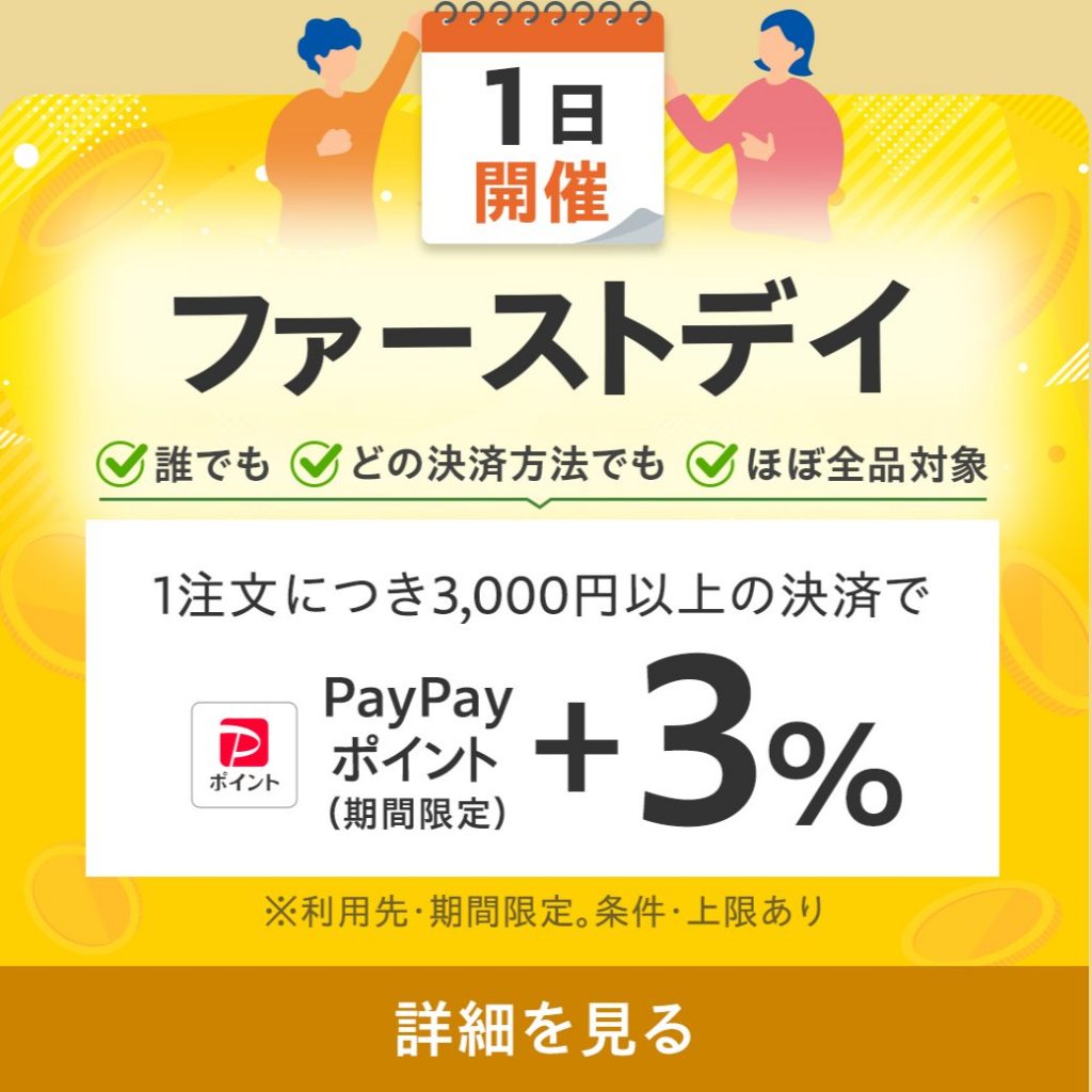 「毎月1日 ファーストデイ +3%」キャンペーン Yahoo!店は4/1(水)ファーストデイ開催 エントリーし[…]