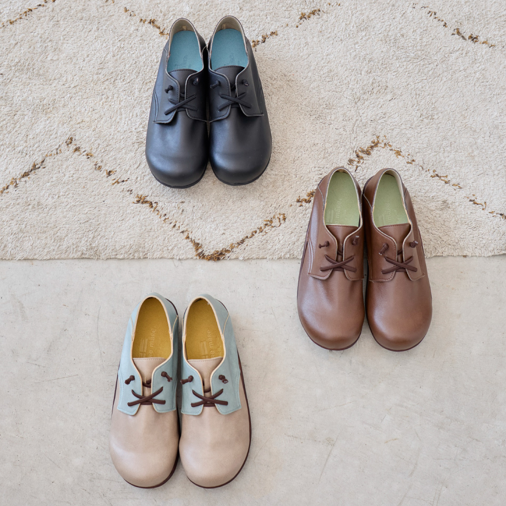 お客様からのご要望多数!懐かしのジブズがついに復活!!!ぽっこりまぁるいフォルムとほっこり手染め生地でレトロでおしゃれなレースアップシューズに。シンプルデザインで靴下との相性も◎