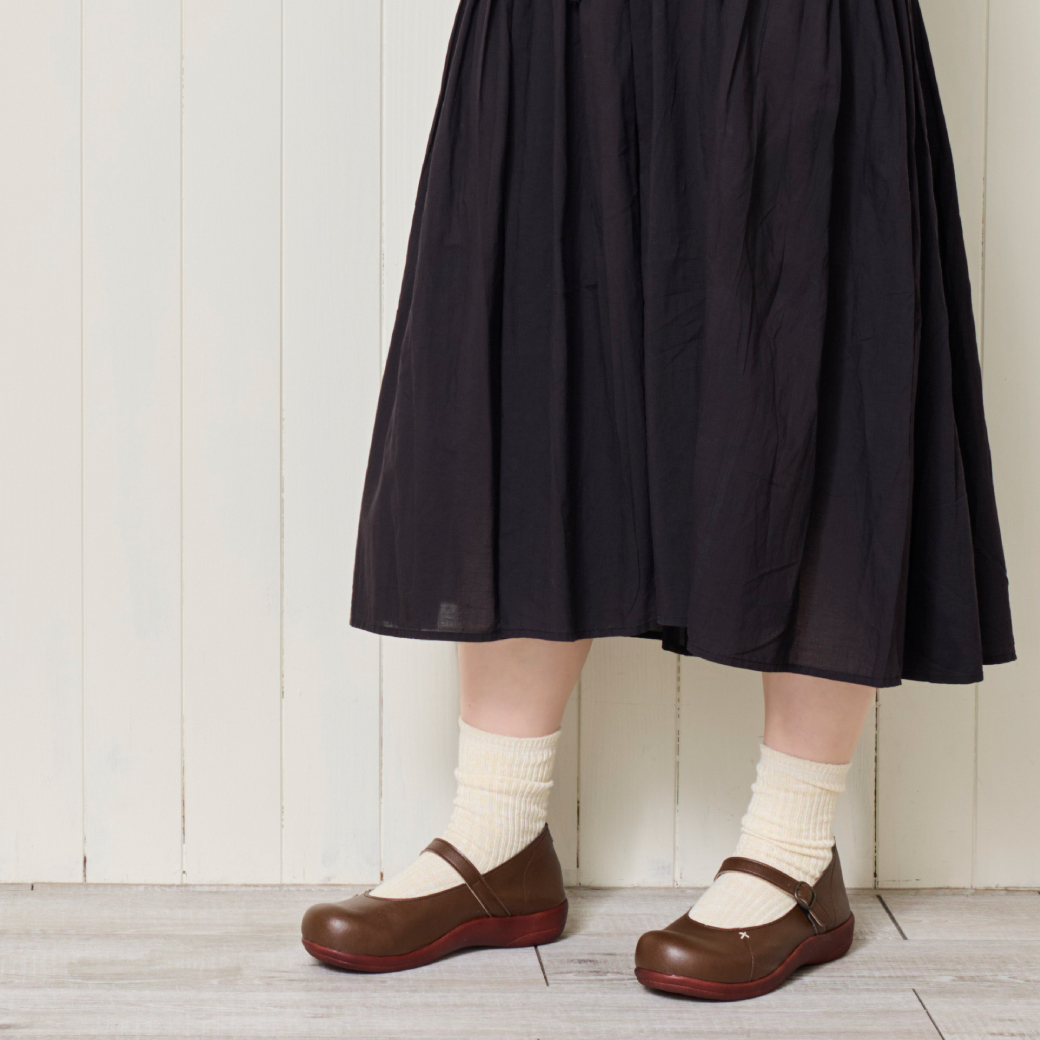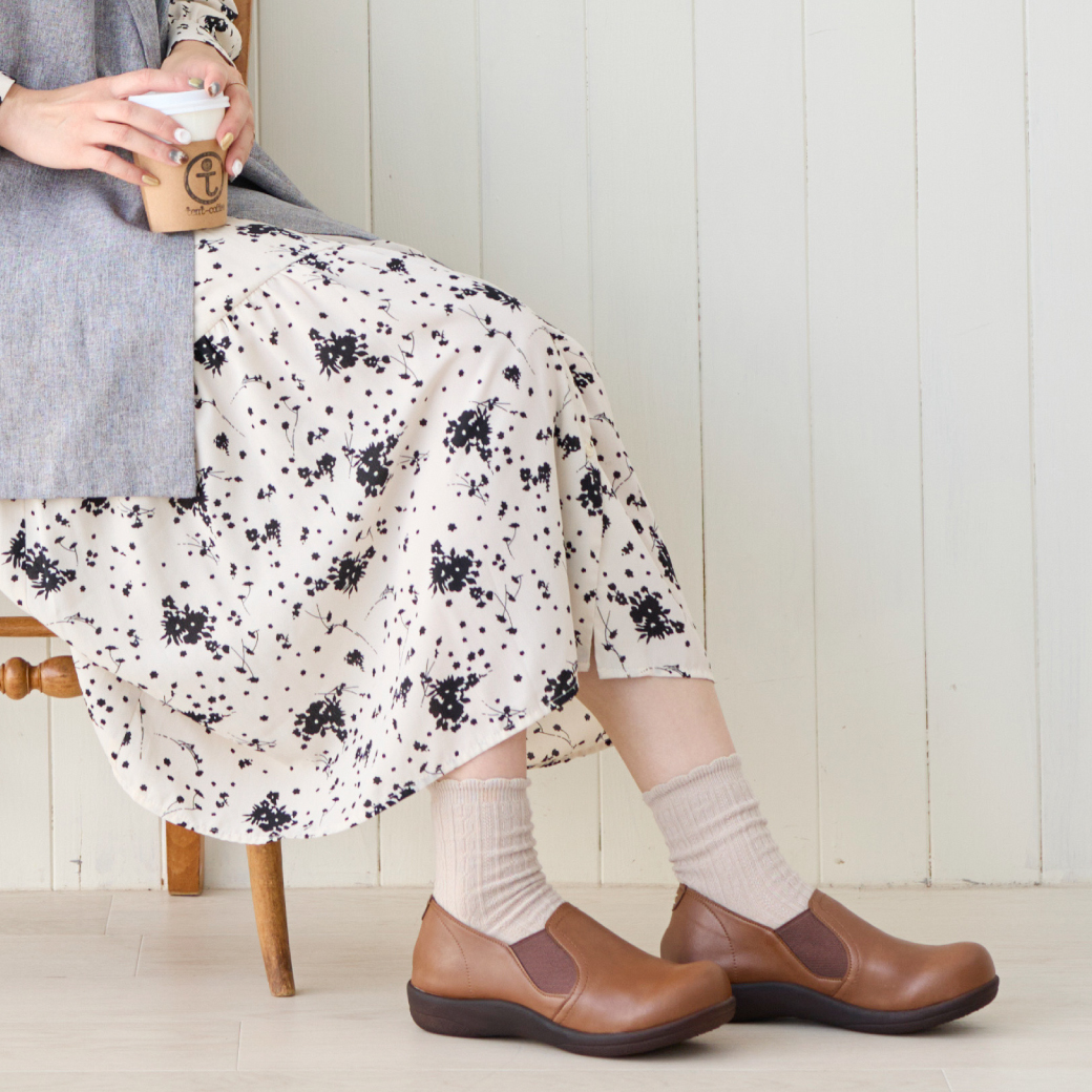 落ち着きのあるシックなデザインとカラーはさまざまなファッションに合わせやすく、コンフォートシューズ初心者の方にもおすすめです。