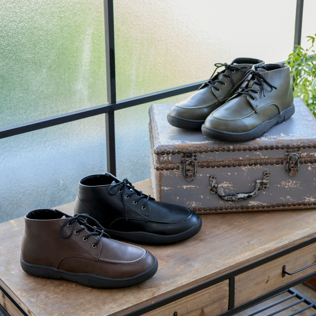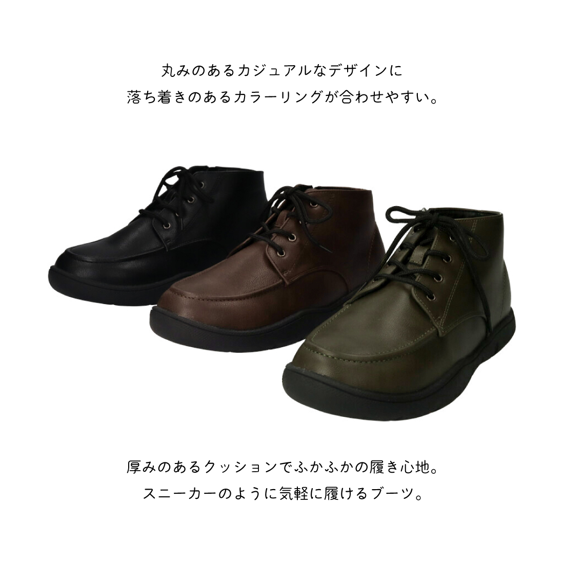 スニーカーのように気軽に履けるカジュアルブーツ。