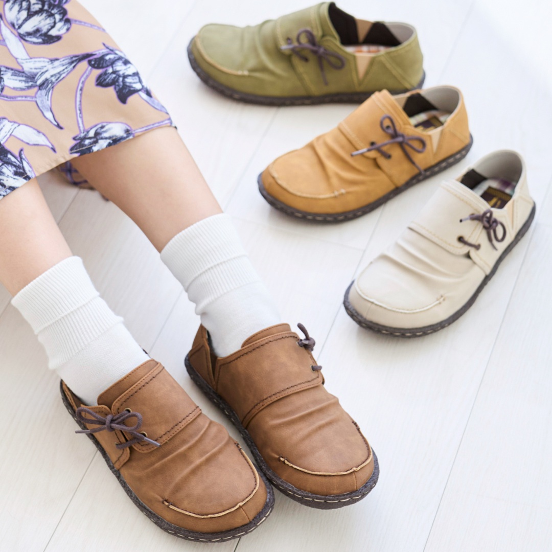 このタイプの靴は足への負担が少なく、長時間の歩行でも疲れにくいのがうれしいポイント。