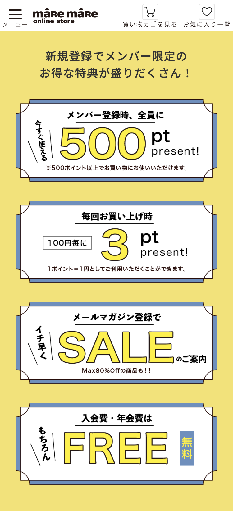 新規登録でメンバー限定の