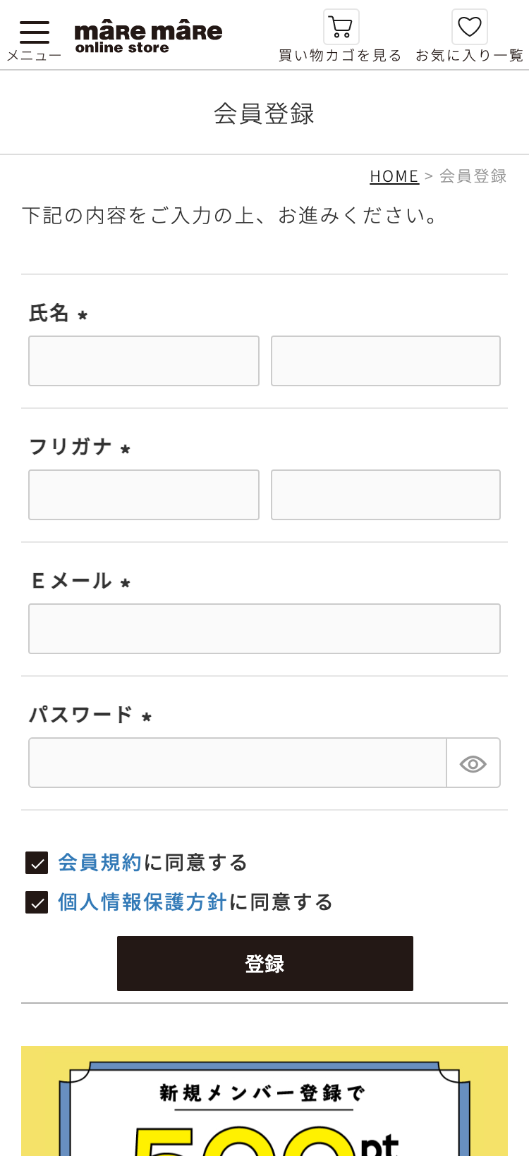 新規メンバー登録ページにアクセス!