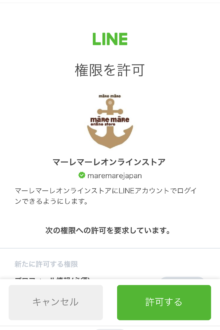LINEアカウントにてログイン後、許可ボタンをタップしてください。