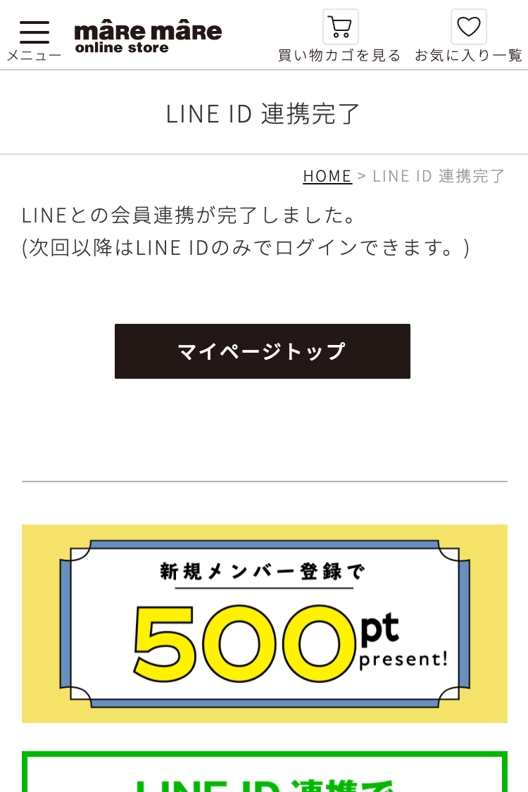 LINE ID連携をすると、次回以降はLINE IDのみでログイン可能です。