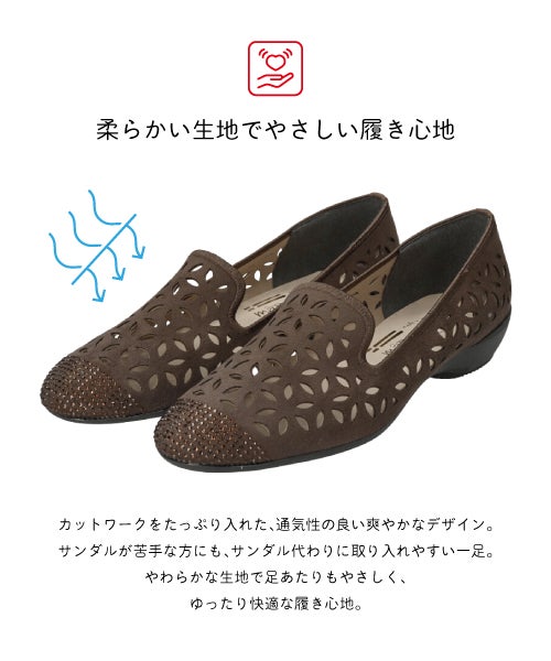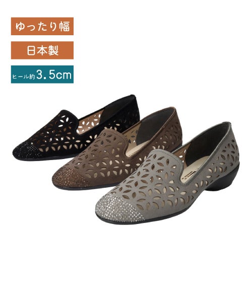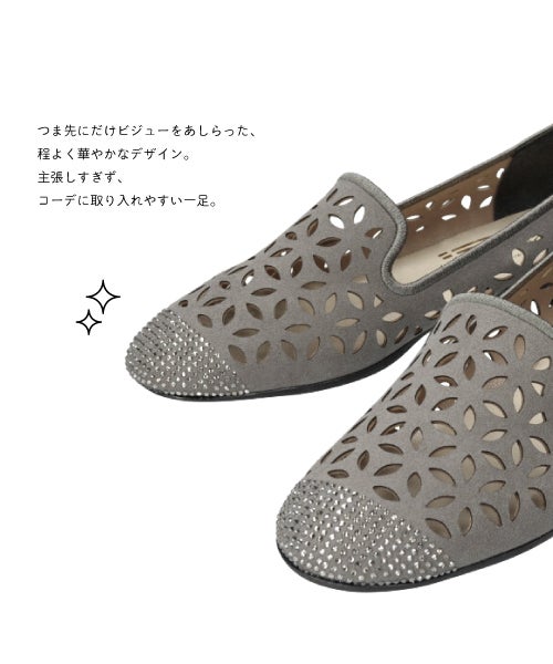 軽やかに、やさしく。大人のカットワークシューズ 日本製 つま先ビジューオペラシューズSE261629