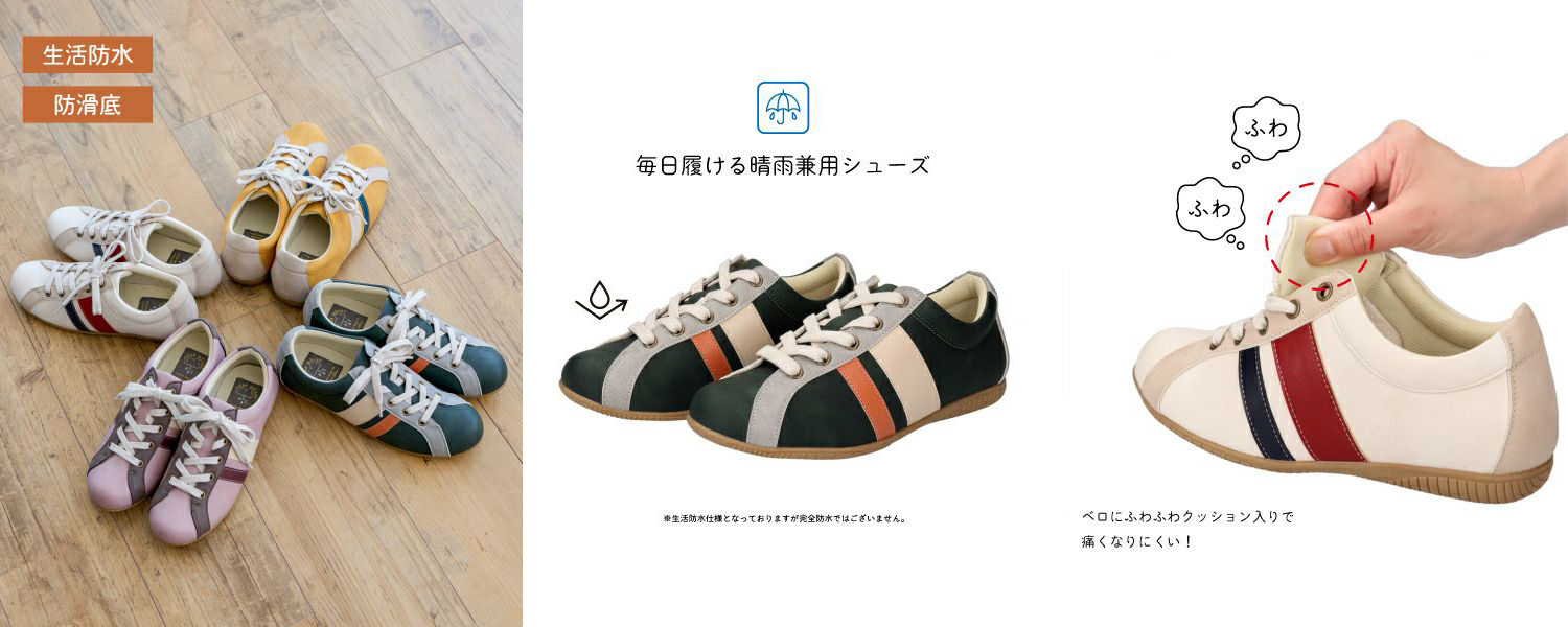 薄底ながらクッション性が高く、長時間の歩行も快適。