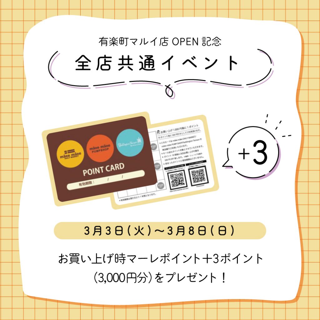 有楽町マルイ店OPENを記念して、 全国のマーレマーレで記念イベントを開催決定!🎉 ▶ 期間:3月3日(火)〜3[…]